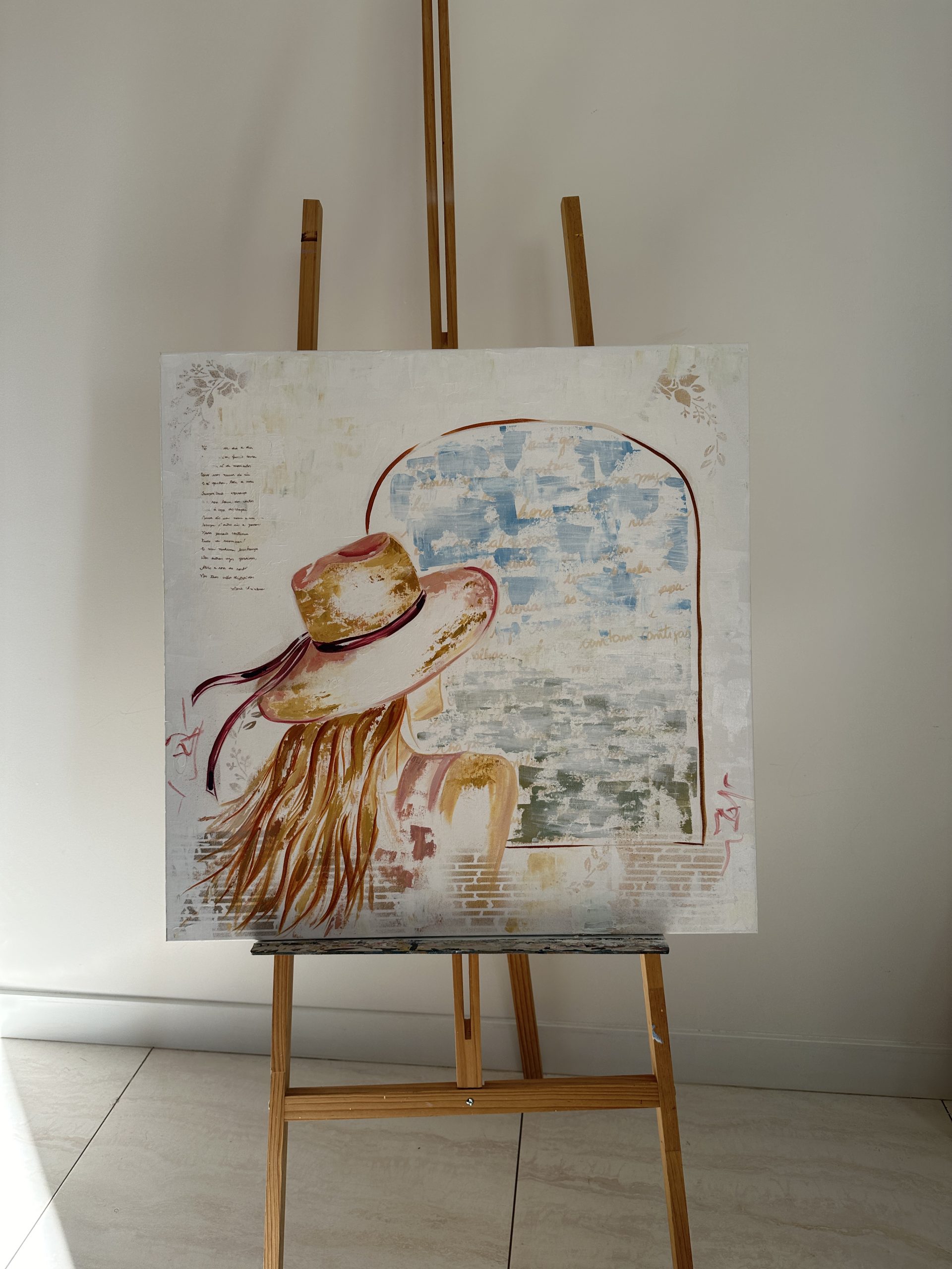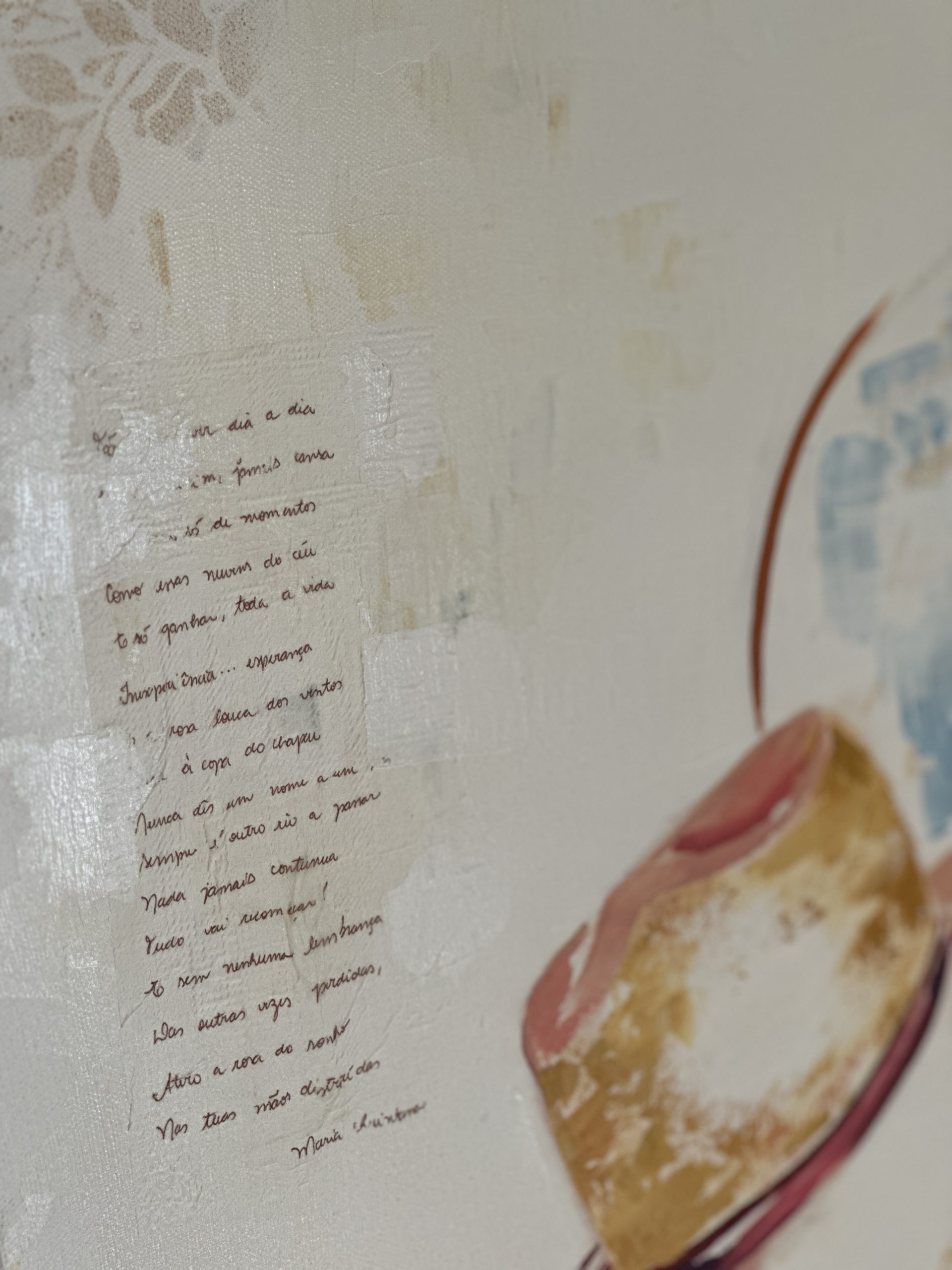 As imagens foram criadas com o intuito de transmitir essa sensação: mais leveza, tranquilidade e a ideia de viver uma vida mais contemplativa. Os títulos das obras são frases retiradas das poesias.